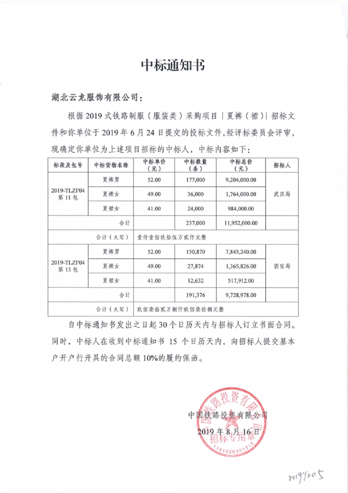 2019式鐵路制服(含服飾類(lèi))采購項目武漢局