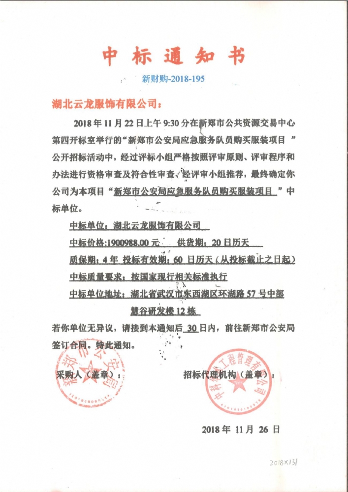 新鄭市公安局應急服務(wù)隊員購買(mǎi)服裝項目